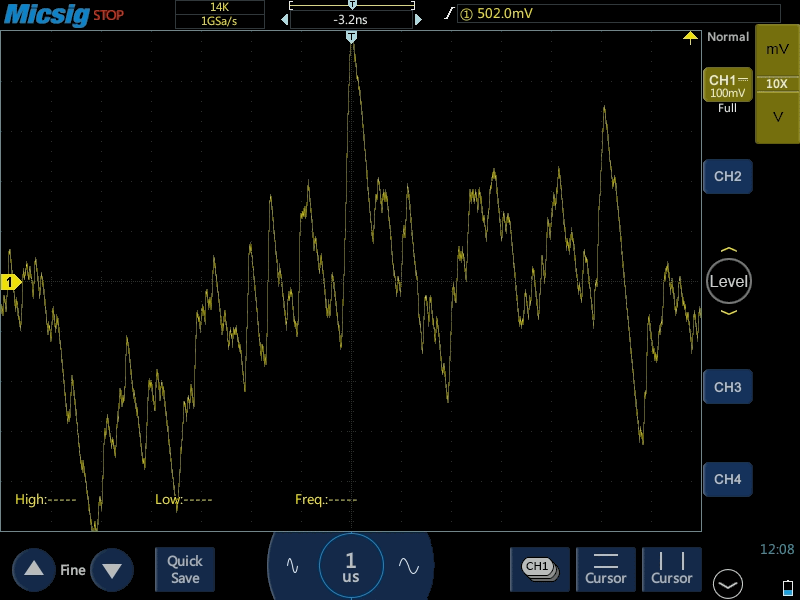 Látszik, hogy vannak jóval 1MHz feltti komponensek is, és alacsony frekvenciás összetevők is.